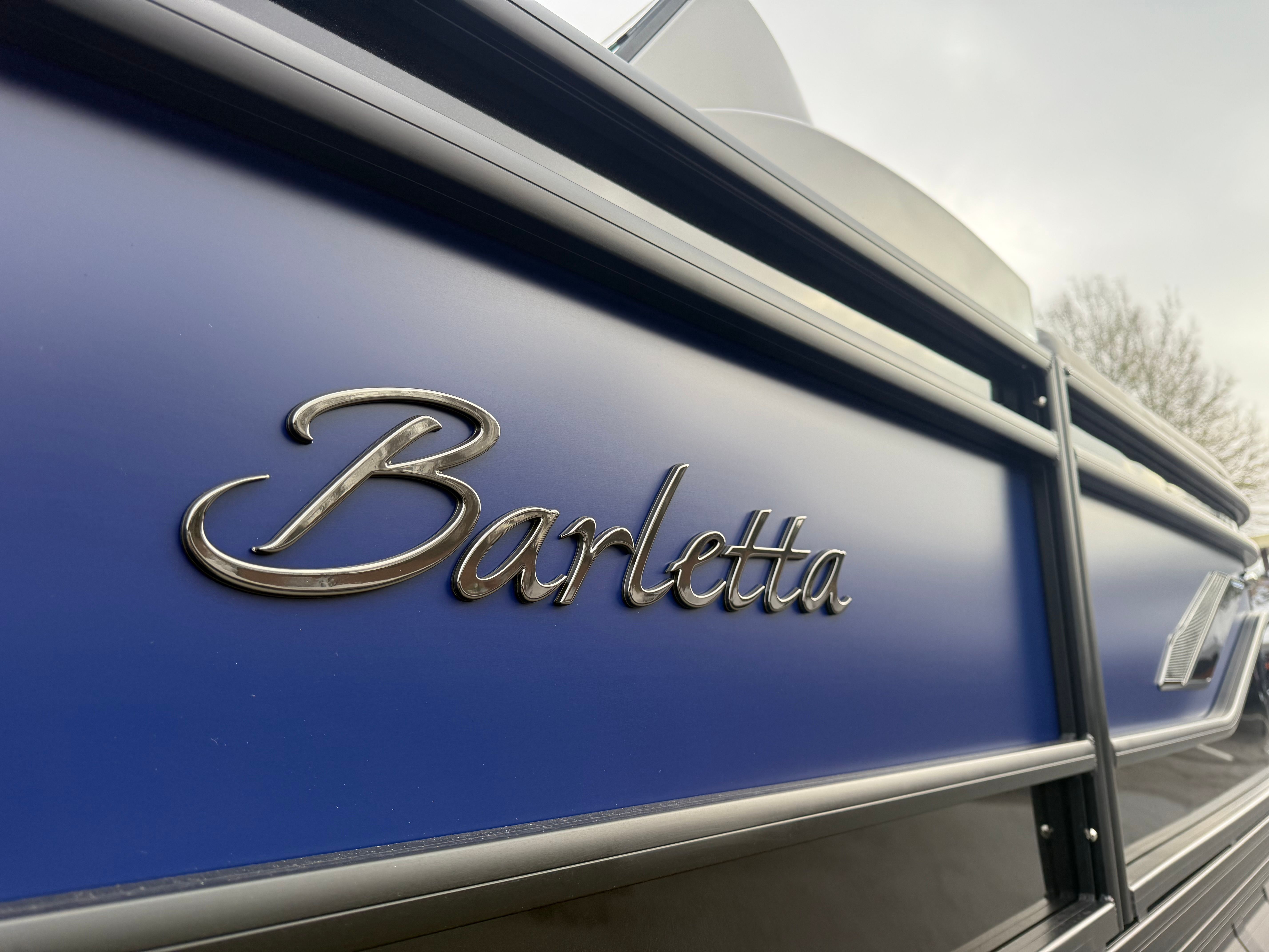 The Barletta Corsa 23UC is packed with special features that elevate its appeal and functionality. The Railskin Color in Black Diamond, paired with the Bohemian Blue accent, gives this pontoon boat a bold and sophisticated look. The Blackout Package Corsa adds a touch of exclusivity, making the boat stand out on any waterway. Inside, the Soft Touch Marquesan Gray furniture with Carbon Accent offers plush seating and a refined atmosphere, while the Amore Gray flooring provides both comfort and durability underfoot.For those who appreciate advanced technology, the Corsa 23UC comes equipped with digital gauges, ensuring you have all the vital information at your fingertips. The Mercury Digital DTS Pre-Rig for VERADO engines with Vessel Link streamlines engine management, while the on-board battery charger with two batteries guarantees reliable power for all your onboard electronics. The Sport Bimini (installed in place of the standard bimini) offers shade and protection, allowing you to enjoy the outdoors in comfort. Every aspect of this pontoon boat is designed to maximize convenience, safety, and enjoyment.