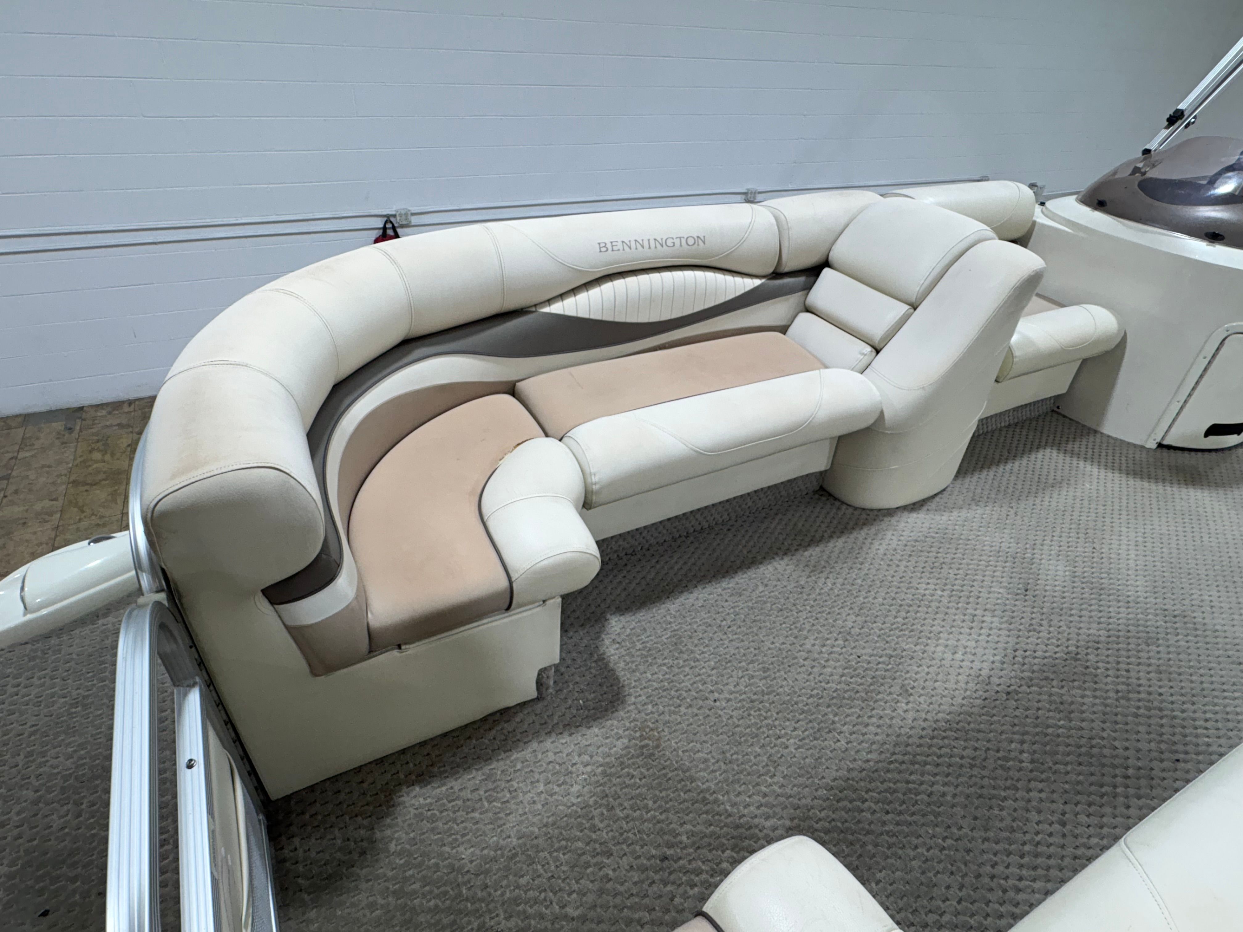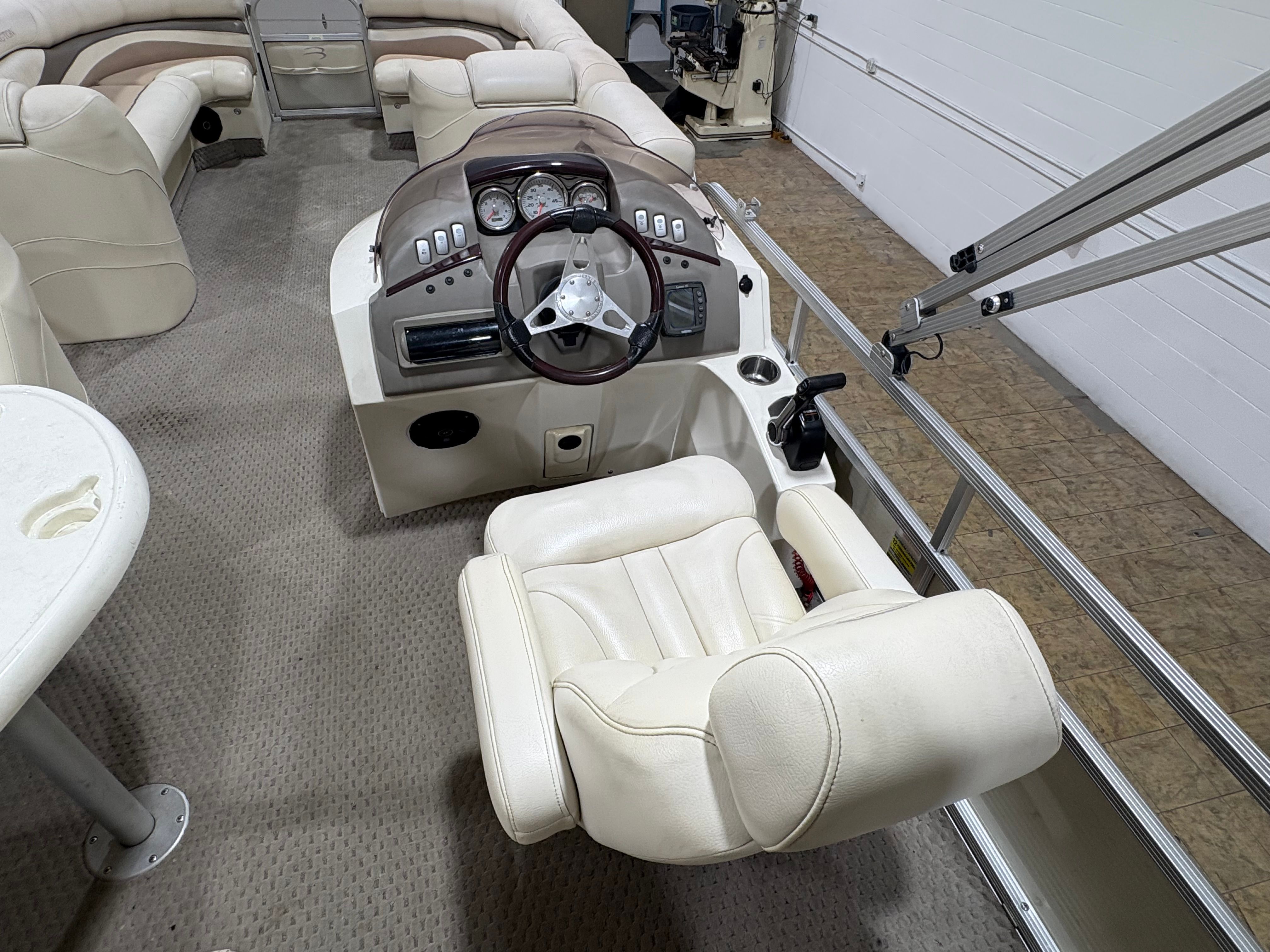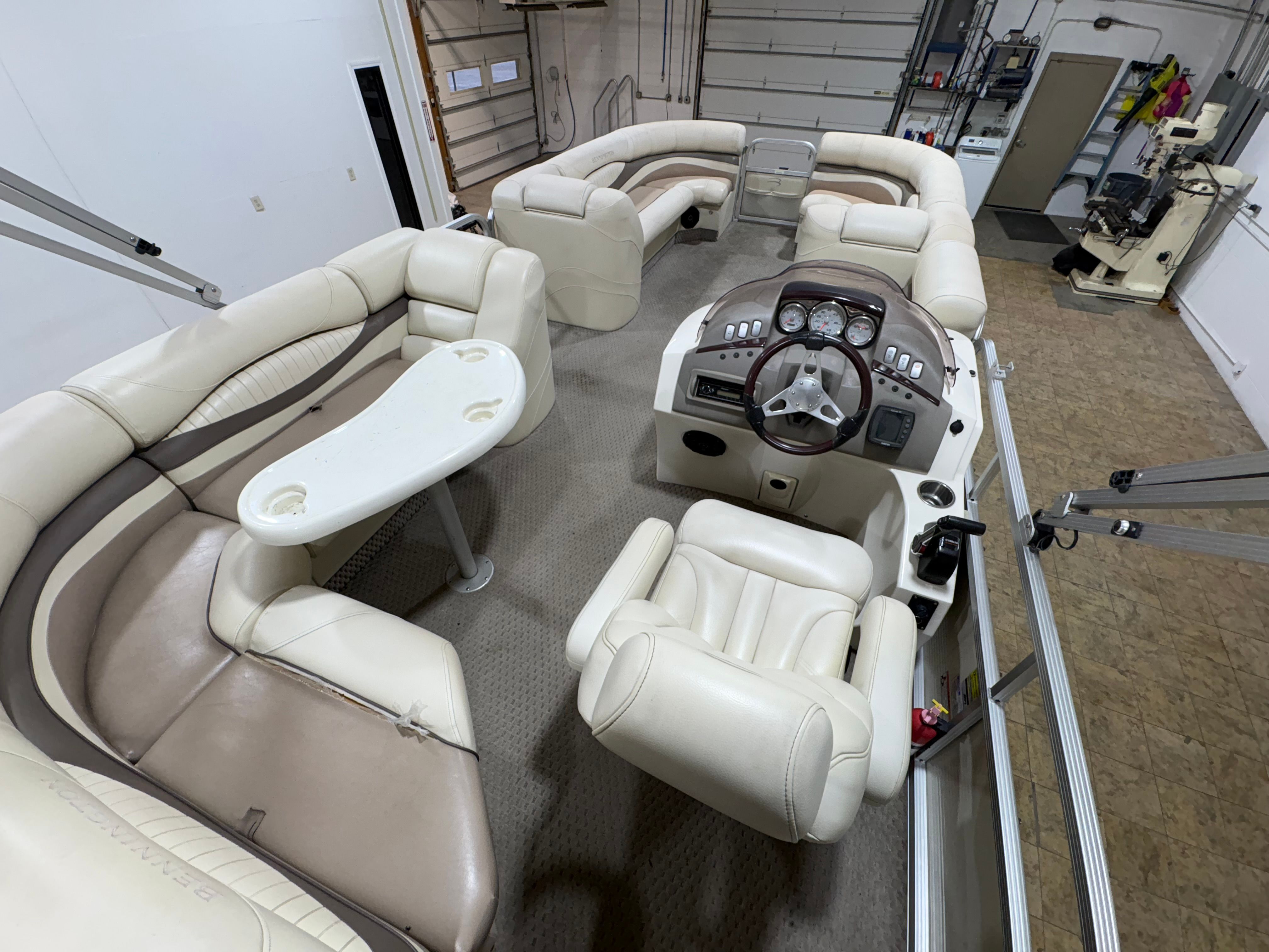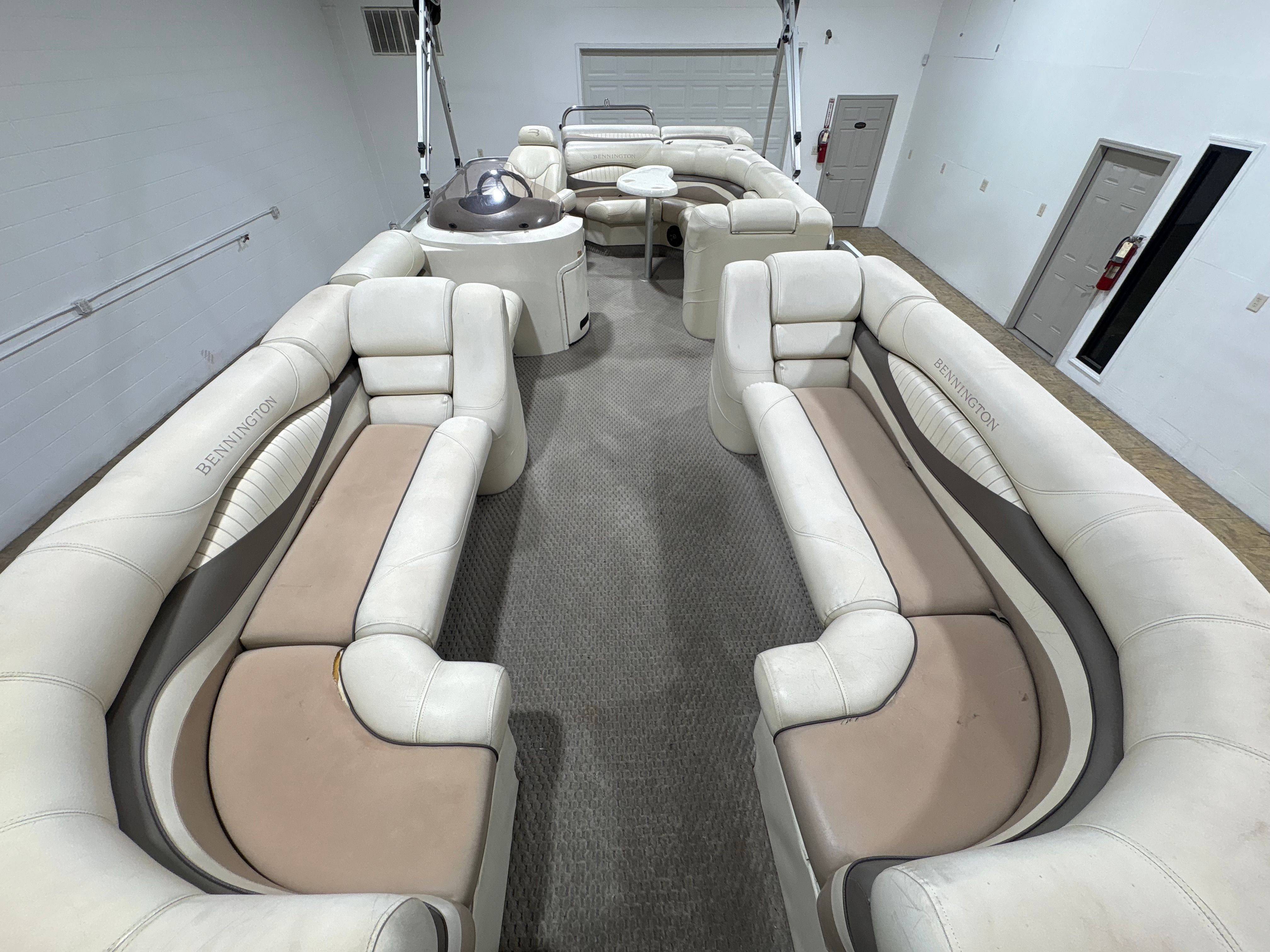 Powering this Bennington pontoon is a single engine delivering an impressive 150 horsepower. With 1005 engine hours, this boat has proven its reliability and is ready for many more adventures. The 150 HP engine provides plenty of power for cruising, towing water toys, or reaching your favorite fishing spots with ease. The smooth handling and responsive acceleration ensure that every outing is enjoyable, whether you’re gliding across calm lakes or navigating busier waterways. The engine’s performance is well-suited to the pontoon’s size, offering a balanced combination of speed, efficiency, and maneuverability.