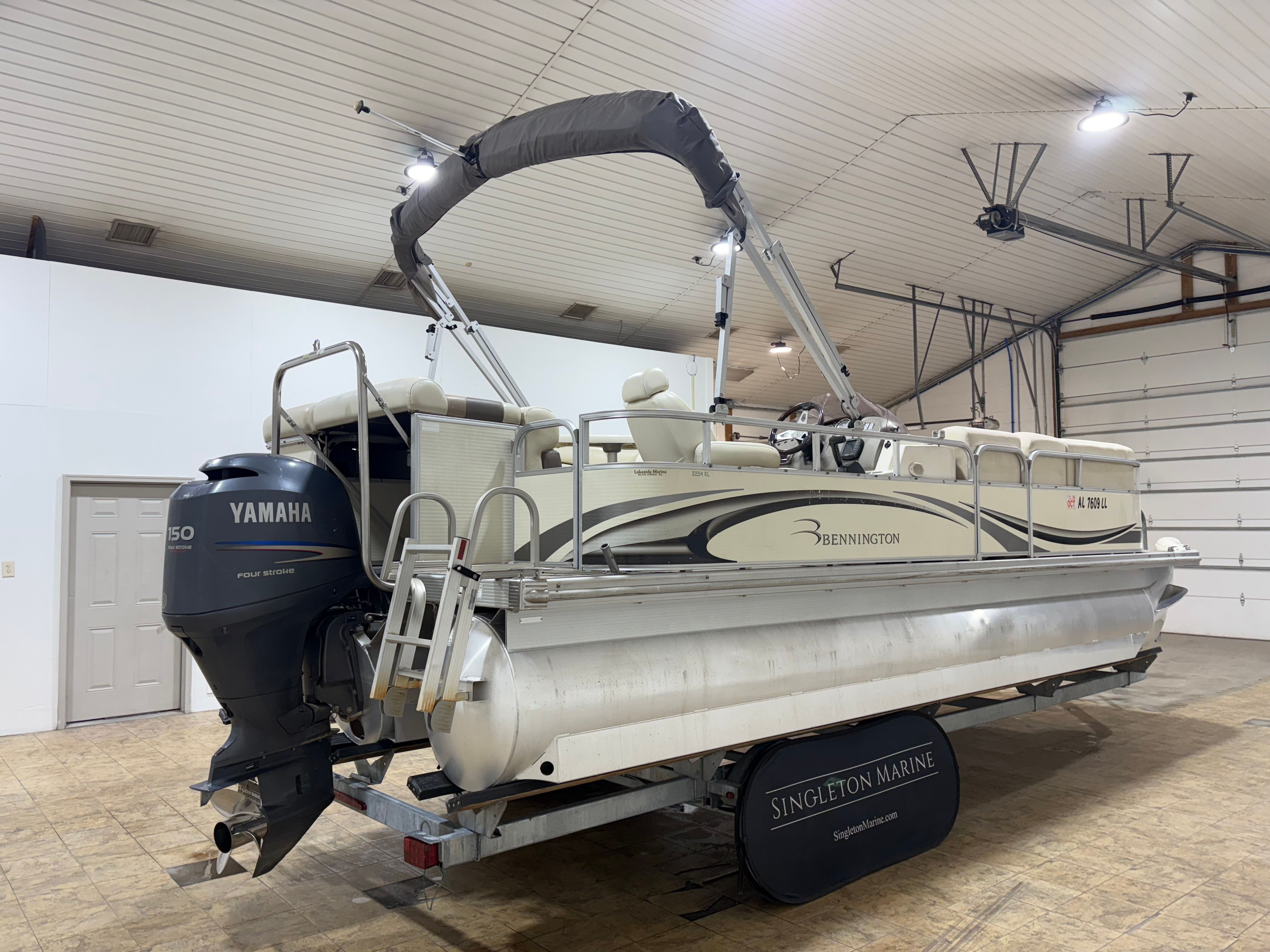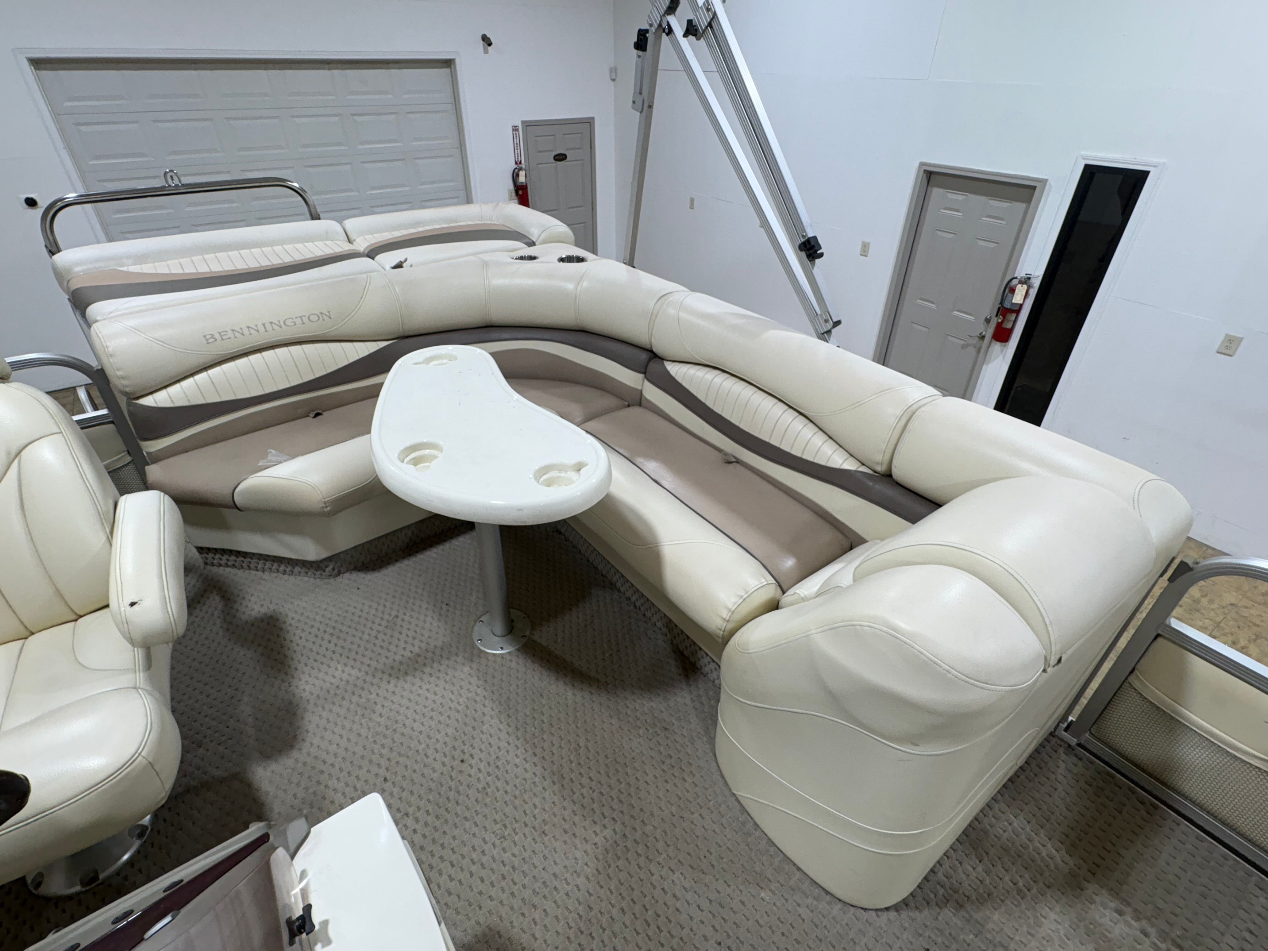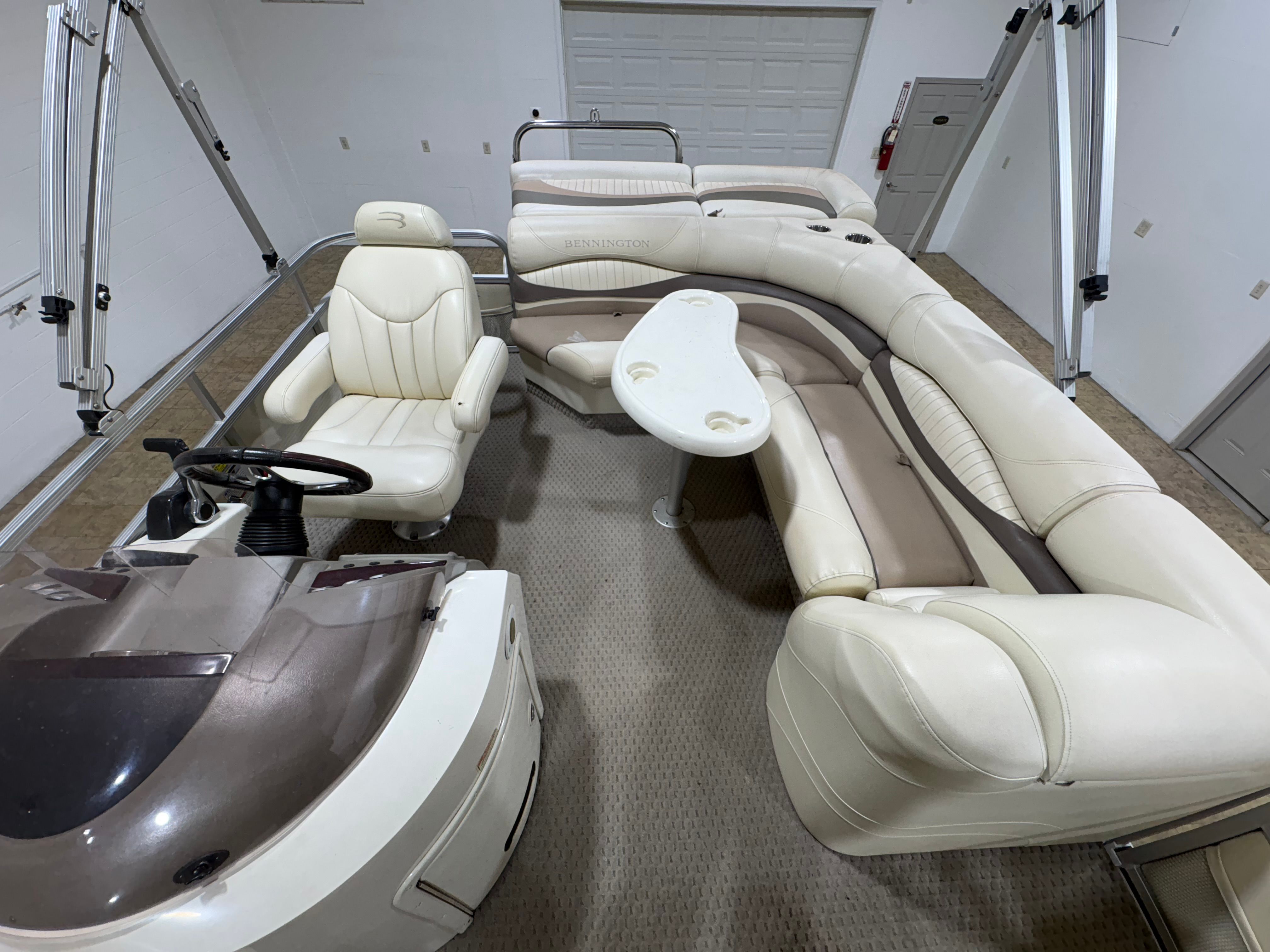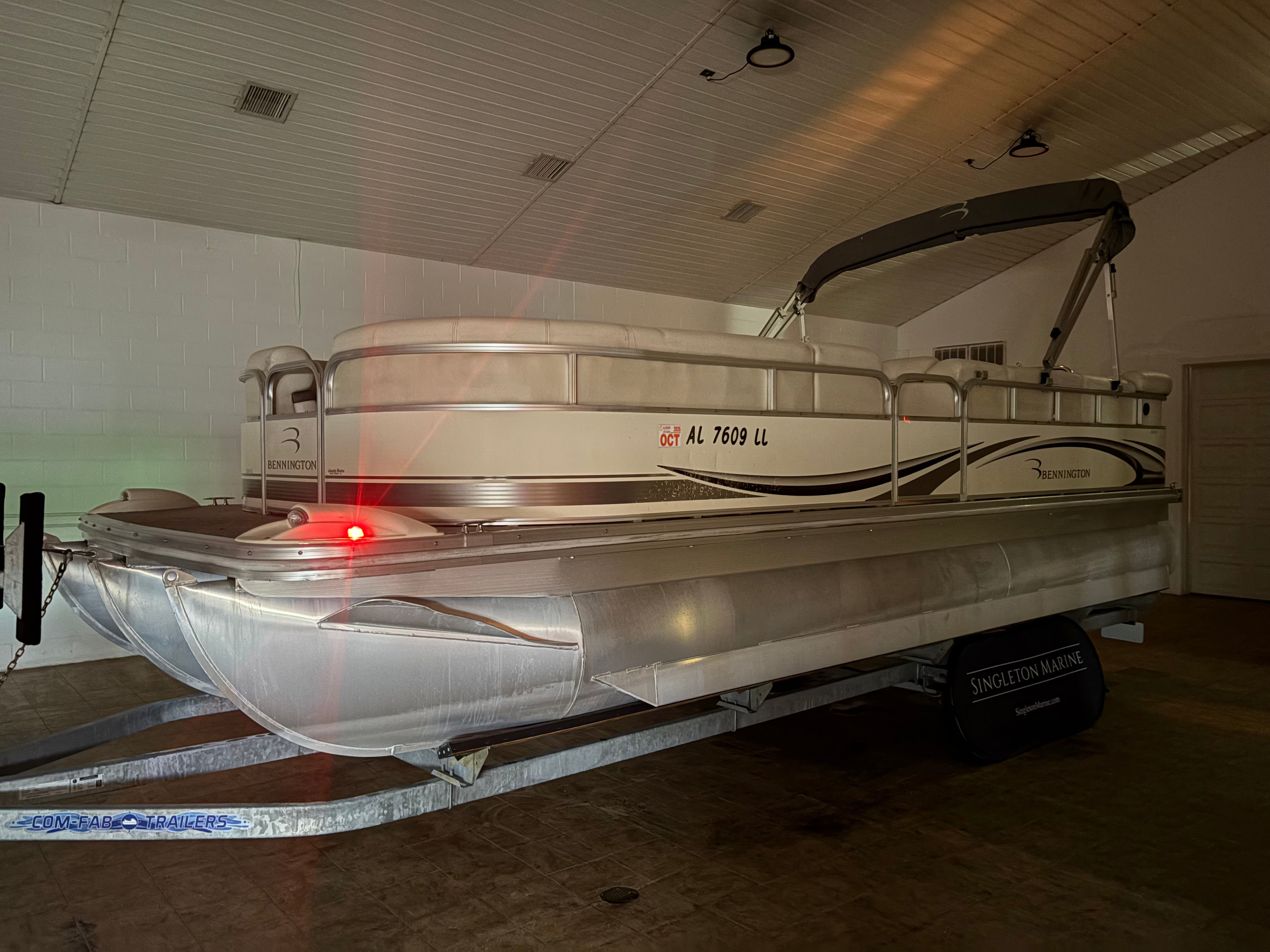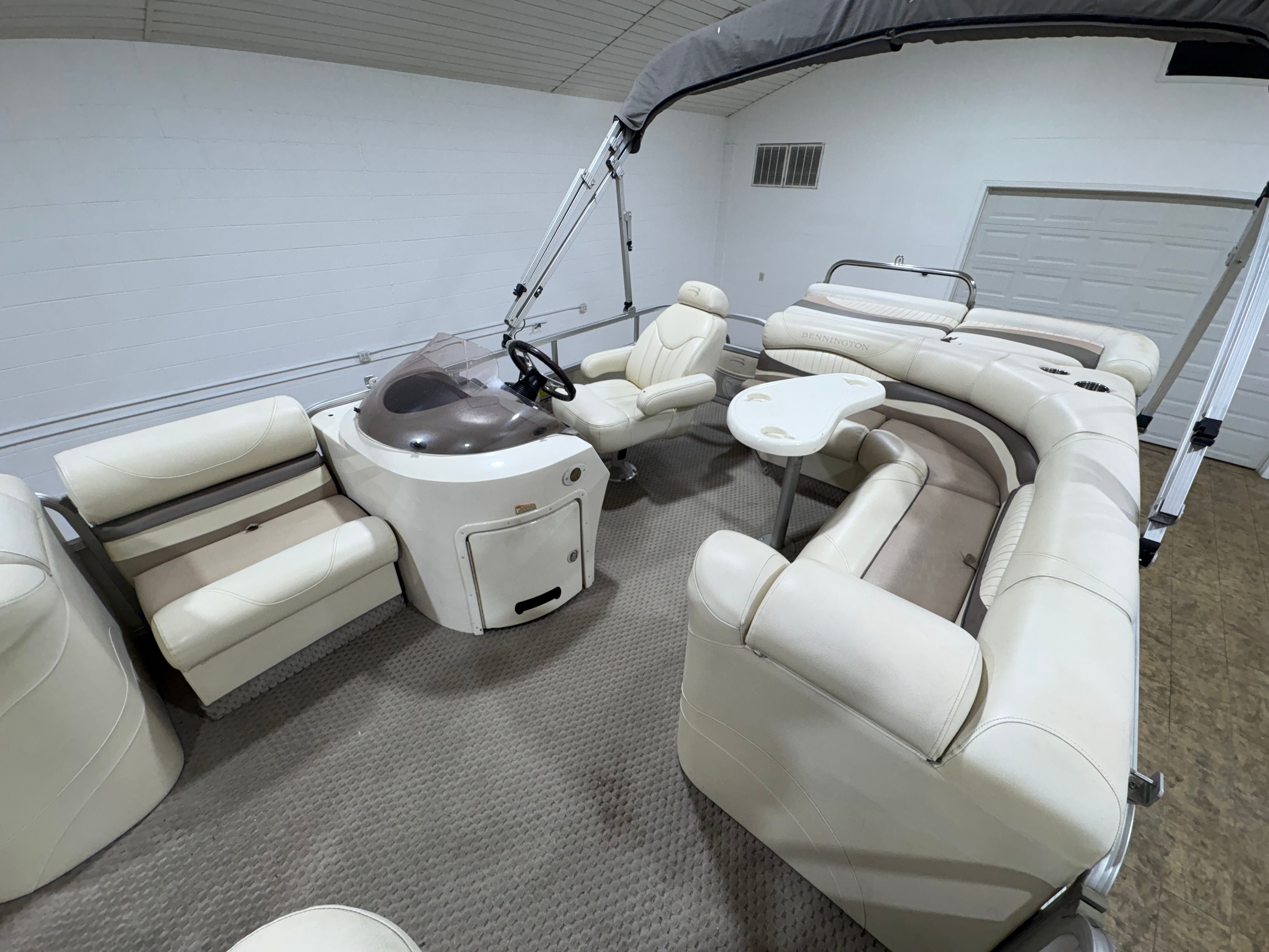 Powering this Bennington pontoon is a single engine delivering an impressive 150 horsepower. With 1005 engine hours, this boat has proven its reliability and is ready for many more adventures. The 150 HP engine provides plenty of power for cruising, towing water toys, or reaching your favorite fishing spots with ease. The smooth handling and responsive acceleration ensure that every outing is enjoyable, whether you’re gliding across calm lakes or navigating busier waterways. The engine’s performance is well-suited to the pontoon’s size, offering a balanced combination of speed, efficiency, and maneuverability.