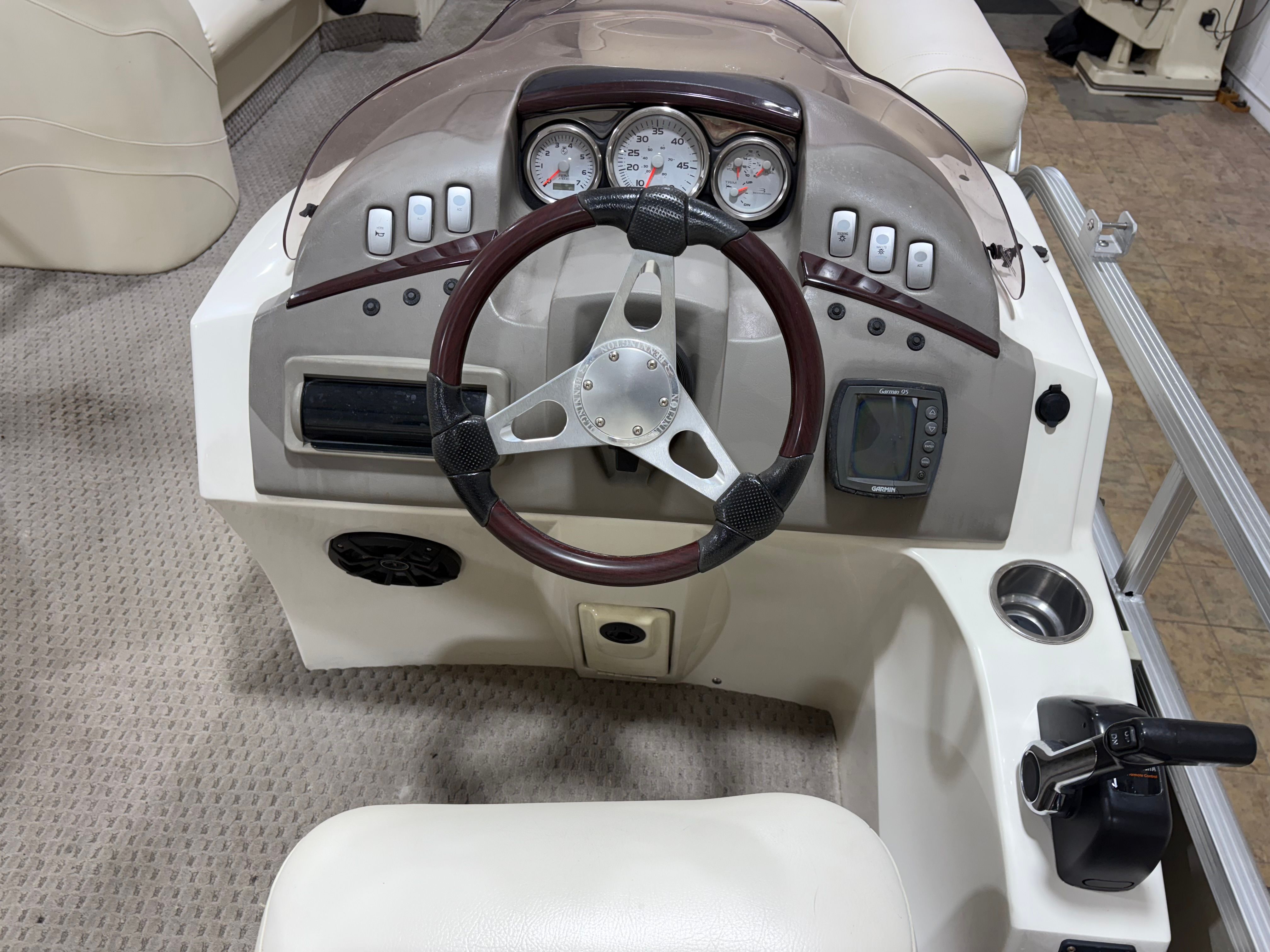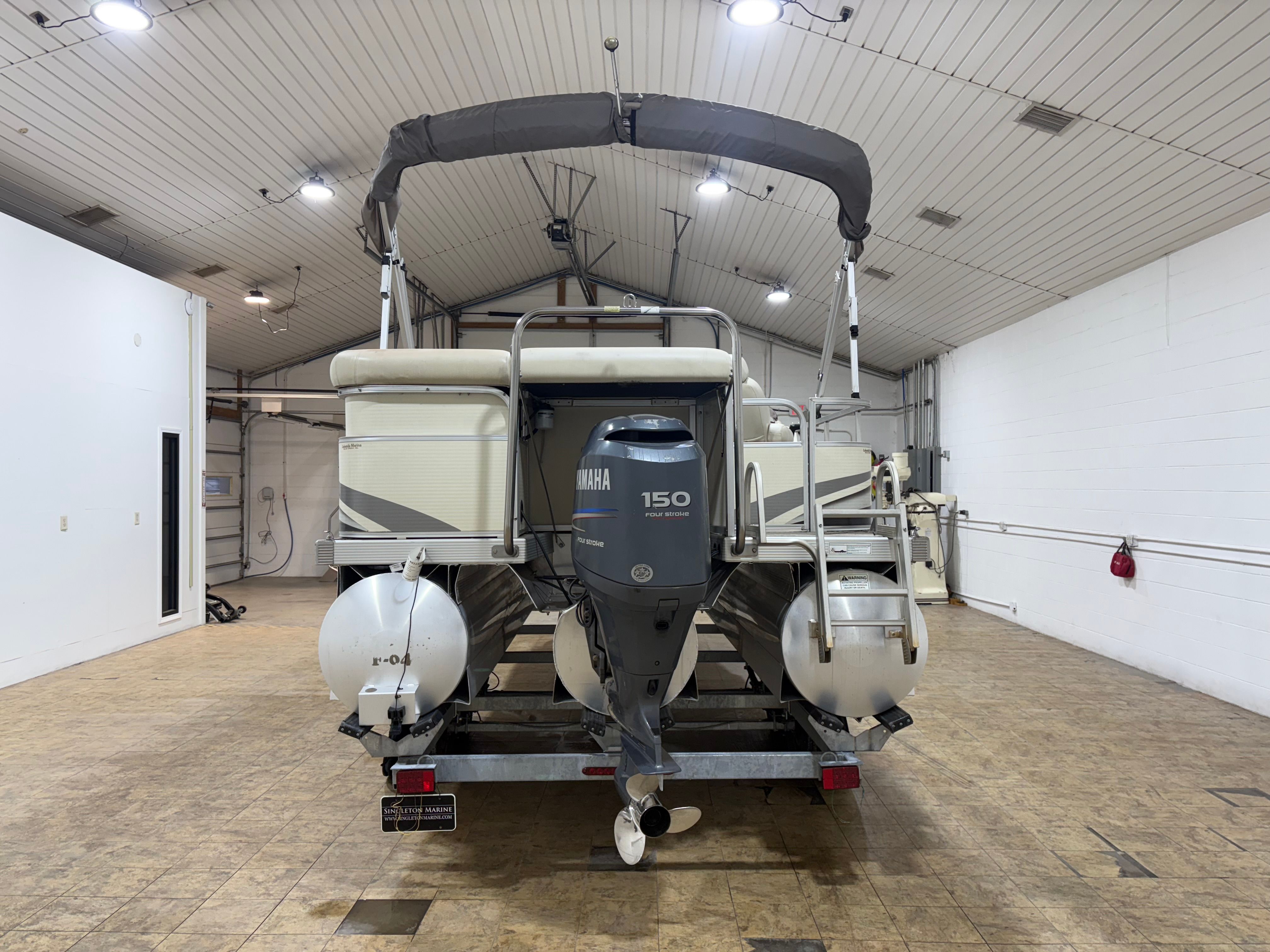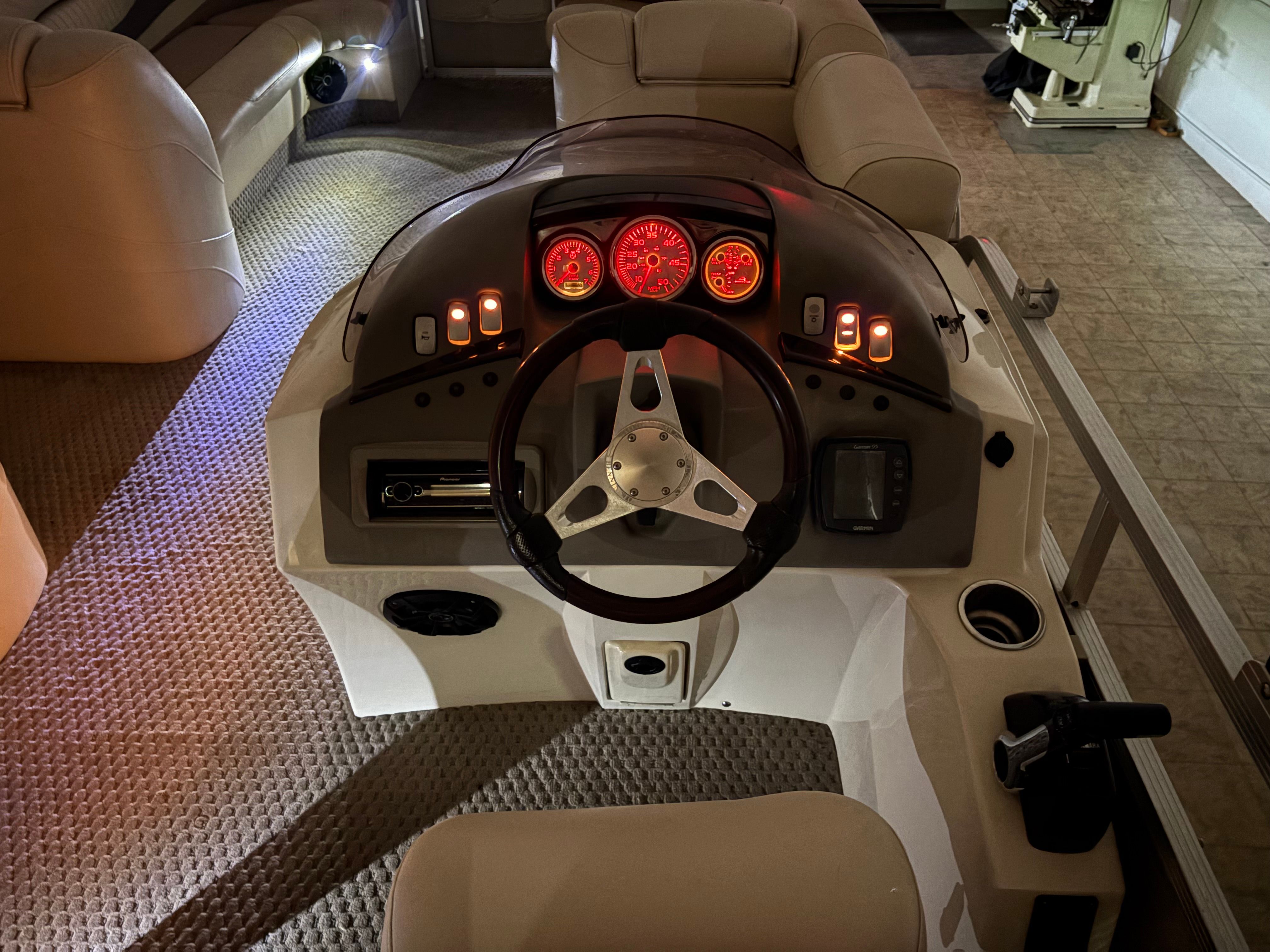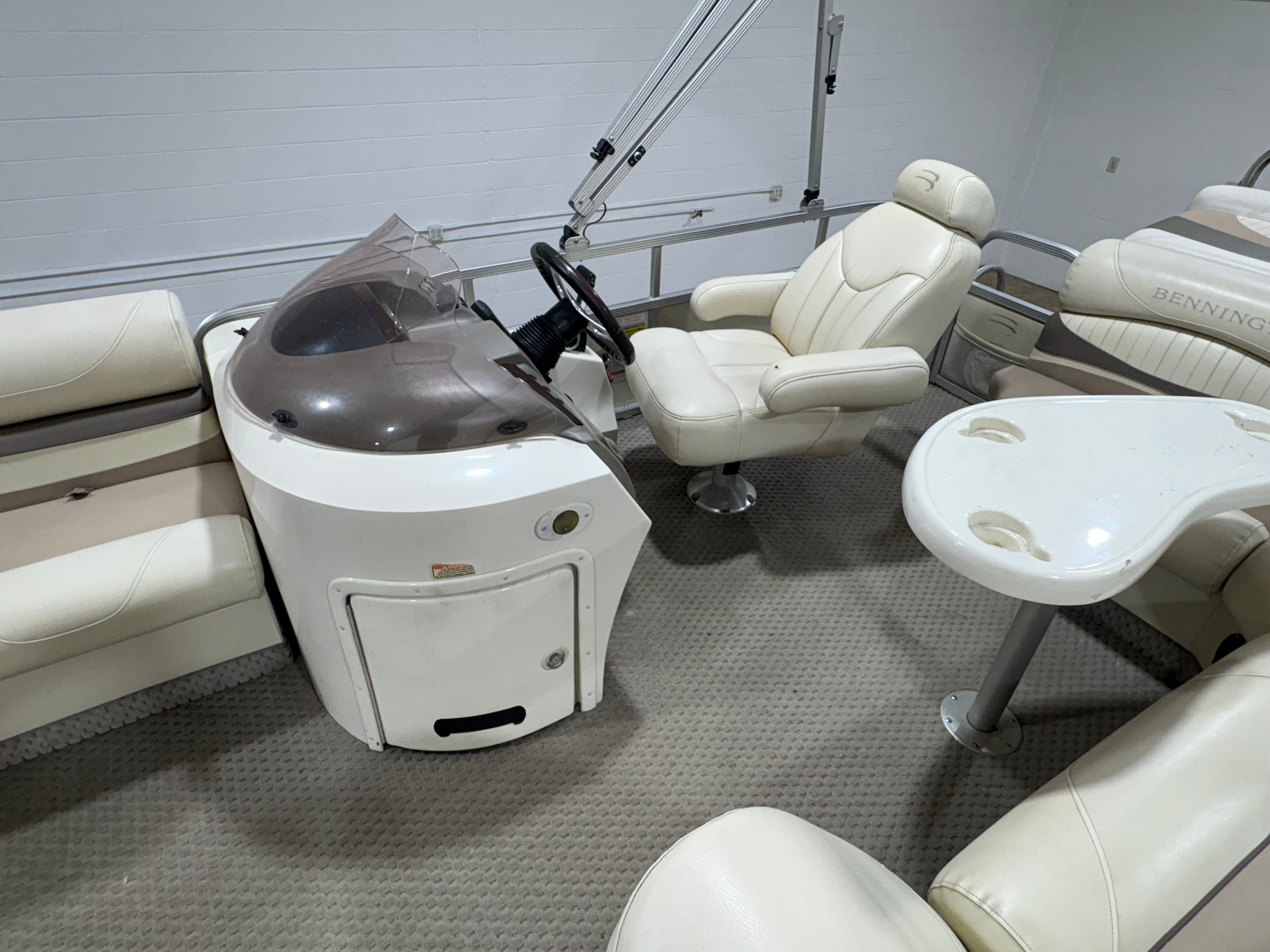 Powering this Bennington pontoon is a single engine delivering an impressive 150 horsepower. With 1005 engine hours, this boat has proven its reliability and is ready for many more adventures. The 150 HP engine provides plenty of power for cruising, towing water toys, or reaching your favorite fishing spots with ease. The smooth handling and responsive acceleration ensure that every outing is enjoyable, whether you’re gliding across calm lakes or navigating busier waterways. The engine’s performance is well-suited to the pontoon’s size, offering a balanced combination of speed, efficiency, and maneuverability.
